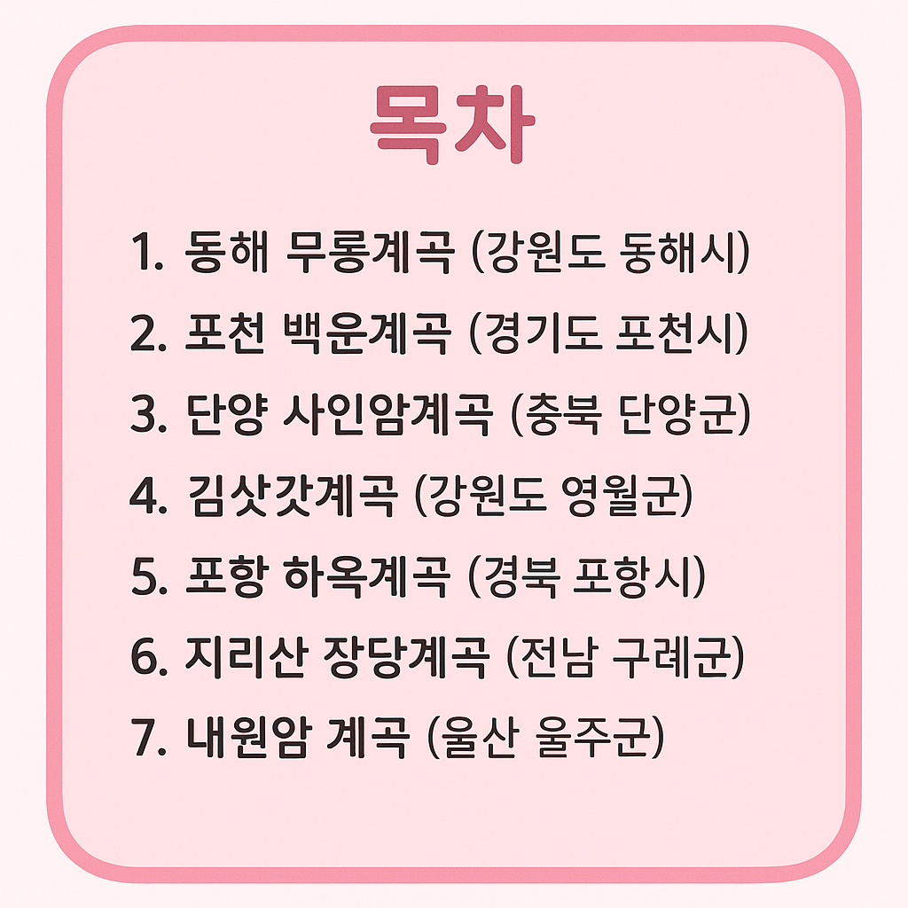 전국에서 사랑받는 7대 대형 계곡의 풍경, 체험 프로그램, 가족 추천 포인트를 한눈에 정리해 드릴게요.