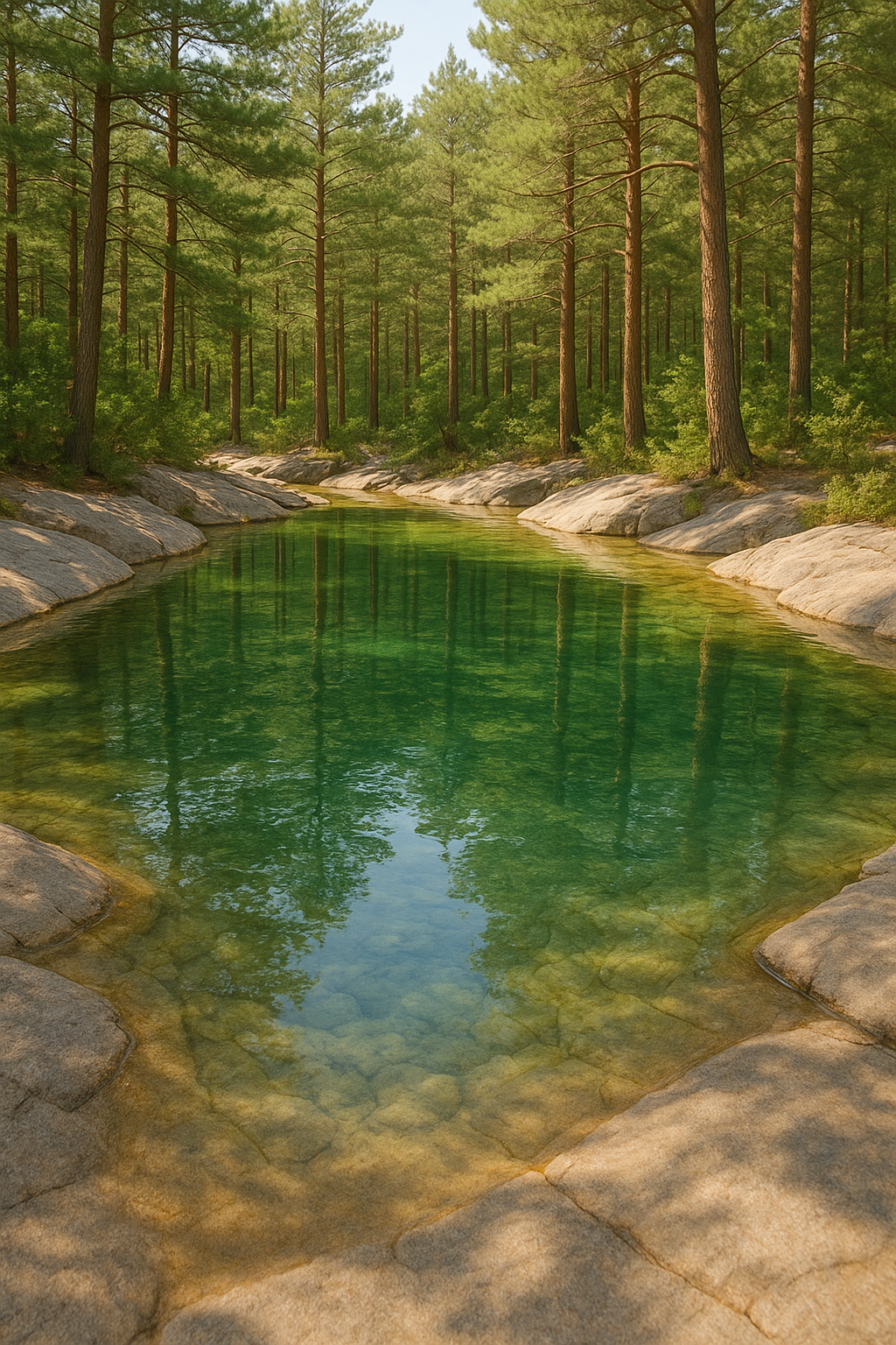 풍경: 소나무 숲 반영되는 얕은 미니 소(沼) 연속
